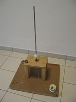 Jedenfalls wird der Timer ausgebaut, und auf die Achse kommt ein Holzstück, in das wiederum ein kleiner Stahldraht quer zur Achse eingeklebt ist. An diesen Stahldraht kann dann der Gummi